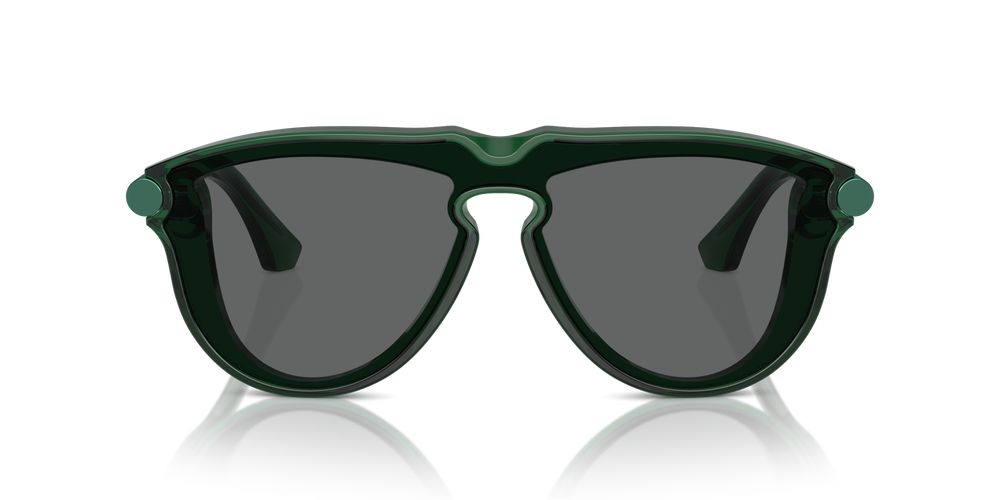 Indulge in the pinnacle of masculine sophistication with Burberry's latest shield sunglasses for men. These striking shades seamlessly blend acetate and metal, creating a frame that's both durable and stylish. The luxurious green hue adds a touch of intrigue, perfect for the fashion-forward gentleman. Featuring state-of-the-art bio polyamide lenses in an elegant grey tint, these sunglasses offer superior protection and clarity. The BE 4427 model exemplifies Burberry's commitment to quality and innovation, marrying form and function in a truly exceptional design. The shield shape provides maximum coverage, making these sunglasses ideal for both urban adventures and seaside escapes. Otticanet proudly presents this authentic Burberry masterpiece, guaranteed to turn heads and enhance your personal style. Whether you're a long-time Burberry enthusiast or new to the brand, these sunglasses are sure to become your go-to accessory. Experience the perfect fusion of British elegance and contemporary flair today.