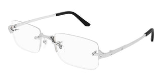 Step into the world of luxury with the Cartier CT0479O eyeglasses from the Santos de Cartier collection. Crafted for men who appreciate sophistication, these squared metal frames in a stunning silver finish offer a timeless appeal. The adjustable lenses ensure a perfect fit, enhancing both comfort and style. With Cartier's renowned authenticity and premium quality, these eyeglasses are more than just an accessory; they are a statement. Embrace your individuality and make a lasting impression with this exquisite piece. Explore the elegance of Cartier eyewear today.