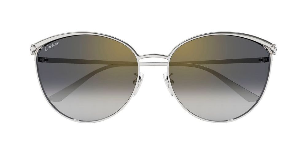 • Experience timeless elegance with the Cartier CT0597SA sunglasses crafted exclusively for women. The cat eye silhouette, rendered in sleek silver metal, embodies a perfect blend of sophistication and bold style. Featuring innovative BIO NYLON grey lenses with adjustable and mirror properties, these sunglasses offer comfort and exceptional clarity throughout your day. Designed to uphold Cartier's unwavering commitment to quality and authenticity, this premium eyewear exemplifies refined craftsmanship and durability. Ideal for those who appreciate a distinctive accessory that balances classic allure with modern innovation. Explore the essence of luxury eyewear with these remarkable sunglasses, a statement piece that complements your unique style.