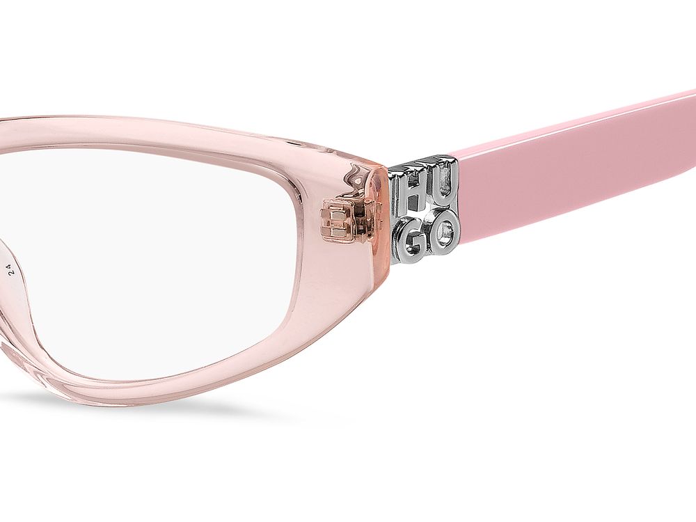 Hugo HG 1258 women eyeglasses combine playful edge and refined craftsmanship in a striking pink cat eye silhouette. Crafted from premium acetate with a complete frame construction, these pink acetate eyeglasses deliver lightweight comfort and a polished finish that speaks to Hugo authenticity. Adjustable lenses allow personalized vision tuning while meticulous detailing highlights the model original character and premium quality. Ideal for women seeking statement eyewear that remains wearable across work and weekend, the HG 1258 pairs modern cat eye style with dependable comfort and lasting durability. Make this authentic Hugo piece part of your signature look and shop the HG 1258 now.