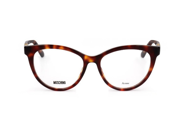 Moschino MOS599 women's eyeglasses blend bold cat eye flair with refined acetate construction in warm Havana. Complete frame lens material and adjustable lenses ensure a precise fit and lasting comfort. Authentic designer details and premium finish create an original, high quality look for fashion forward women. Try them at Otticanet today.