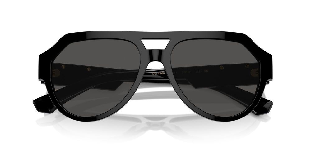 • Elevate your style with the Dolce & Gabbana DG4466 pilot sunglasses for men, available exclusively at Otticanet. Crafted from high-quality acetate in sleek black, these sunglasses exude sophistication and luxury. The polyamide lenses in a versatile grey shade provide optimal protection while offering a timeless look.The adjustable lens type ensures a perfect fit for all-day comfort and style. Dolce & Gabbana's attention to detail and superior craftsmanship shine through in every aspect of these sunglasses, making them a must-have accessory for the modern man who values both fashion and function.Whether you're hitting the city streets or lounging by the pool, the DG4466 sunglasses will effortlessly elevate any outfit. Embrace the originality and authenticity of Dolce & Gabbana's designs and make a statement with every wear. Upgrade your eyewear collection with these iconic pilot sunglasses and step up your style game today. Try them on and experience the luxury for yourself.