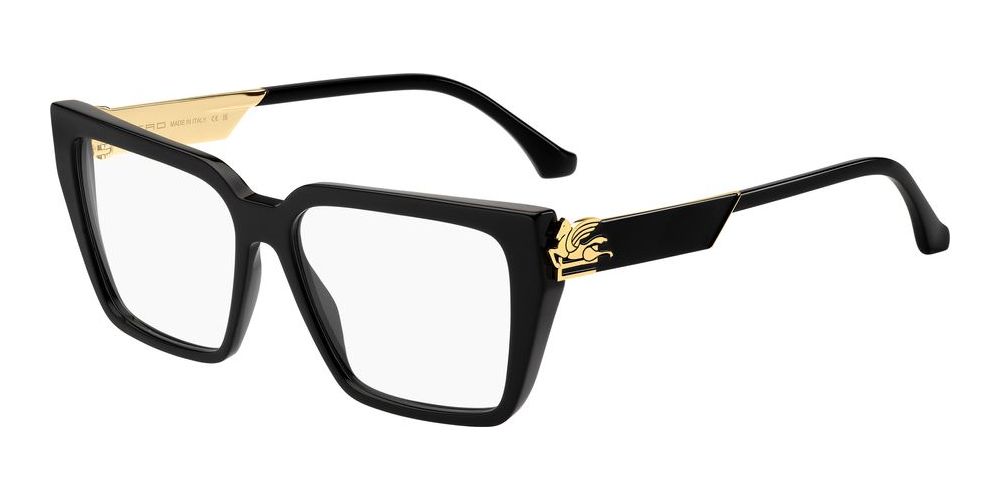 Discover the timeless elegance of Etro with these unisex butterfly-shaped eyeglasses in classic black. Crafted from high-quality acetate, the black frame is complemented by chic rimmed lenses. The ETRO 0030 model exudes sophistication and style, perfect for any fashion-forward individual. With a lens size of 54/15/140, these original Etro glasses are a must-have addition to your eyewear collection. Shop now on Otticanet for authentic designer eyewear that will elevate your look effortlessly.