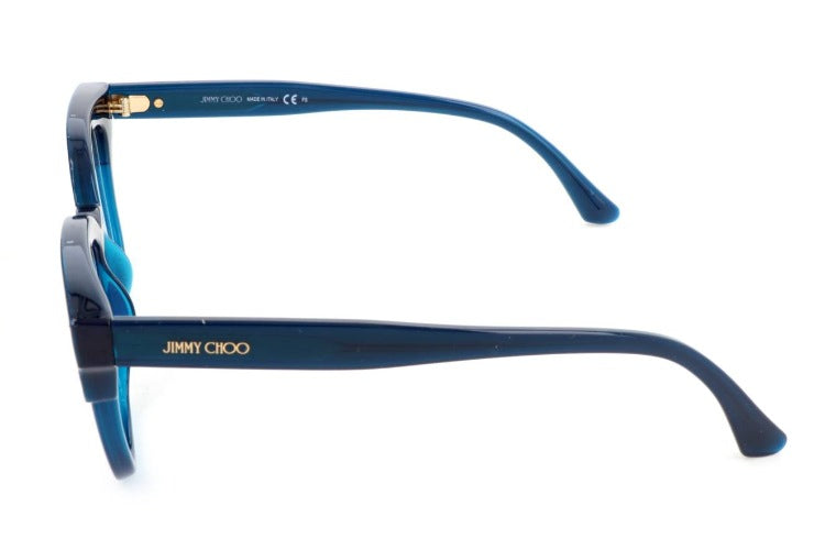 Jimmy Choo JC176 women's eyeglasses blend bold butterfly shape with luxurious craftsmanship. A blue propionate complete frame offers lightweight comfort and lasting shape while adjustable lenses ensure a personalized fit. Authentic designer detailing and premium materials make these women's butterfly frames an original choice for style conscious wearers. Shop JC176 at Otticanet and try them on today.