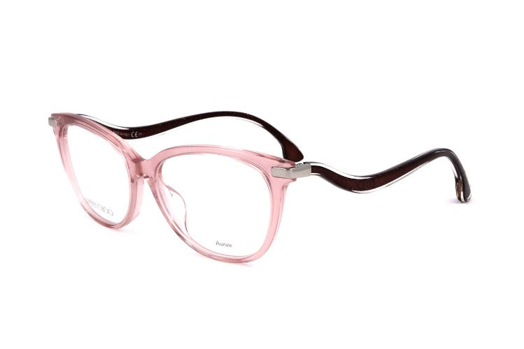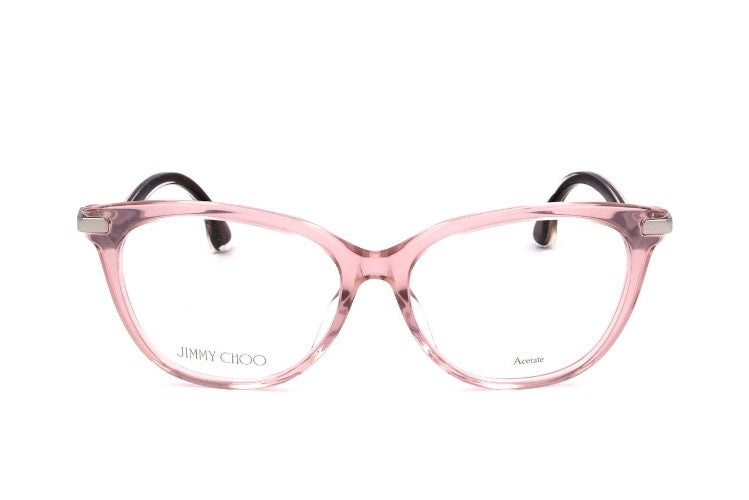 Jimmy Choo JC259/F women's eyeglasses bring signature glamour to everyday style. The cat eye shape in soft pink acetate blends couture attitude with comfortable wear. Complete frame construction supports prescription or adjustable lenses while hand finished acetate and precise contouring showcase authentic designer craftsmanship. These premium designer eyewear pieces are perfect as fashion forward cat eye frames or refined optical glasses for work and leisure. Model JC259/F affirms Jimmy Choo originality and premium quality in a feminine silhouette that stands out without shouting. Try these pink acetate frames for a lasting statement and secure your pair today.