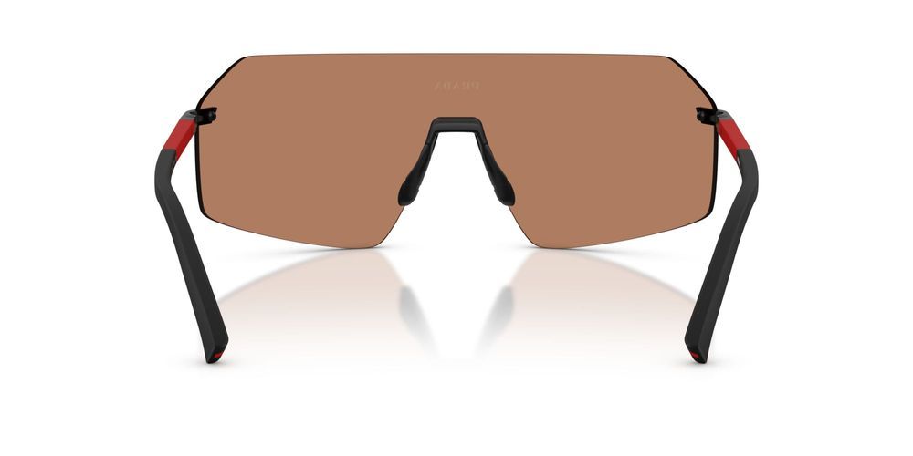 Introducing the Prada Linea Rossa PS B50S sunglasses, a bold and stylish choice for the modern man. Featuring a striking shield shape, these sunglasses are crafted from premium black metal for a sleek look. The innovative BIO POLYAMIDE lenses in a warm brown hue offer not only exceptional clarity but also adjustable comfort. Experience the perfect blend of originality and authenticity that Prada is renowned for, making these sunglasses a must-have accessory for any fashion-forward individual. Step out in confidence and make a statement. Explore the Prada Linea Rossa collection today and redefine your eyewear game.