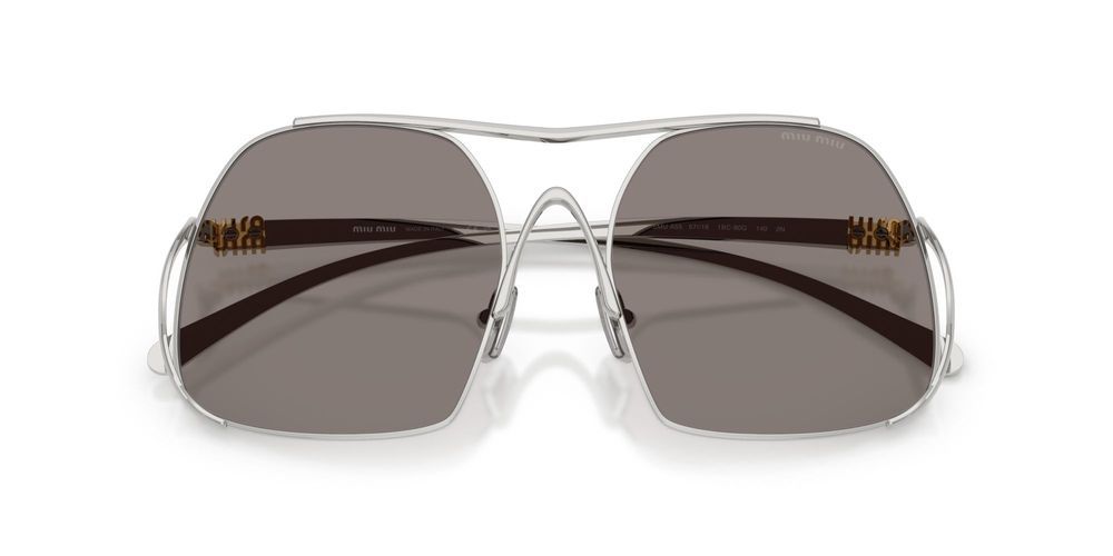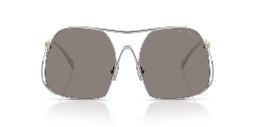 Unveil your individuality with the Miu Miu 0MU A55S sunglasses, a stunning accessory crafted for the modern woman who values both style and sophistication. These oversize sunglasses feature a sleek silver steel frame, offering a striking contrast to the classic grey lenses. Designed to provide ultimate comfort and protection, the Miu Miu sunglasses exude a sense of luxury and originality that sets you apart. With their bold silhouette and refined details, they are the perfect blend of fashion-forward design and timeless elegance. Step into the spotlight and let your personality shine through with these exquisite sunglasses. Explore the Miu Miu collection at Otticanet and redefine your eyewear wardrobe today.