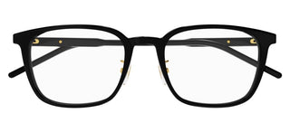 Indulge in the epitome of sophisticated style with these Gucci men's eyeglasses. The GG1465OA model boasts a bold squared shape, crafted from premium black acetate for a timeless look that exudes confidence. These frames seamlessly blend Italian craftsmanship with modern design, offering a complete frame that speaks volumes about your discerning taste. The adjustable lenses ensure optimal vision and comfort, tailored to your unique needs. Perfect for the fashion-forward gentleman who appreciates the finer things in life, these Gucci eyeglasses are more than just a visual aid; they're a statement piece that complements any ensemble. With their sleek silhouette and iconic Gucci quality, these glasses are sure to turn heads wherever you go. Experience the luxury and refinement of Gucci eyewear firsthand. Add these exceptional frames to your collection today and see the world through a lens of unparalleled style and sophistication.