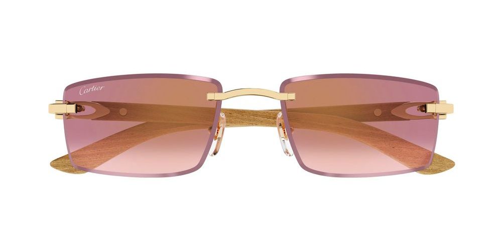 Introducing the Cartier CT0582S sunglasses, a true masterpiece for the modern man. Crafted from premium metal, the striking gold frame exudes sophistication while the squared shape adds a contemporary edge. The BIO NYLON lenses, tinted in a stylish pink hue, not only provide exceptional clarity but also offer adjustable comfort for a perfect fit. These sunglasses effortlessly combine originality and authenticity, making them a standout accessory for any occasion. Indulge in luxury and make a statement with Cartier’s unparalleled craftsmanship. Experience the allure of these sunglasses and explore more at Otticanet.