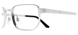 Introducing the Cartier CT0481O eyeglasses from the iconic Santos de Cartier collection, meticulously designed for the modern man who appreciates sophistication and style. These rectangular frames are crafted from premium metal, showcasing a sleek silver finish that effortlessly complements any wardrobe. The adjustable lens type ensures a customized fit, providing comfort without compromising on elegance. Embrace the originality and authenticity that comes with Cartier, a brand synonymous with luxury and innovation. Perfect for both professional settings and casual outings, these eyeglasses embody a distinguished look that stands the test of time. Elevate your eyewear game with a statement piece that reflects your refined taste. Explore the Cartier CT0481O and make a lasting impression today.