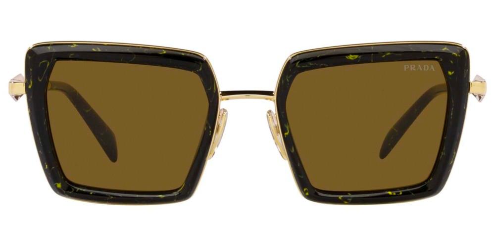 Elevate your look with these stunning Prada geometric sunglasses for women. The BLACK MARBLE/DARK BROWN color combination adds a touch of sophistication to any outfit. Made with a durable steel frame in sleek black, these sunglasses are both stylish and sturdy. The POLYAMIDE lenses in rich brown offer UV protection and can be customized to your prescription. The PR 55ZS model exudes luxury and elegance, making it a must-have accessory for any fashion-forward woman. With a 52/22/140 size, these sunglasses are designed to fit comfortably and securely. Shop these original Prada sunglasses on Otticanet for a chic and timeless addition to your collection.