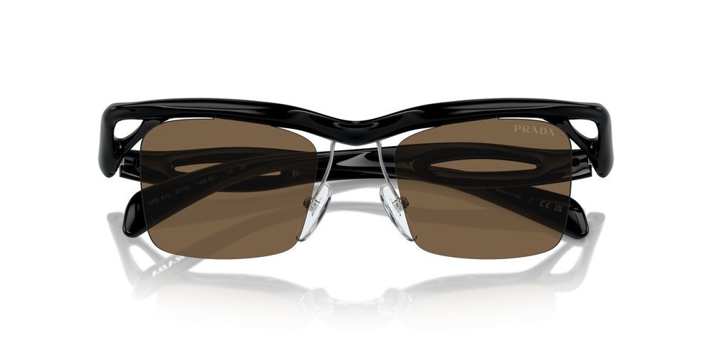 Elevate your style with these Prada men's geometric sunglasses in BLACK/DARK BROWN. Crafted from high-quality injected material in sleek black, these sunglasses feature brown POLYAMIDE lenses for a sophisticated look. The PR A15S model boasts a 47/20/135 size for a comfortable fit. With a pilot shape and original Prada branding, these sunglasses are a must-have for any fashion-forward man. Shop now on Otticanet for authentic Prada eyewear that exudes luxury and elegance.
