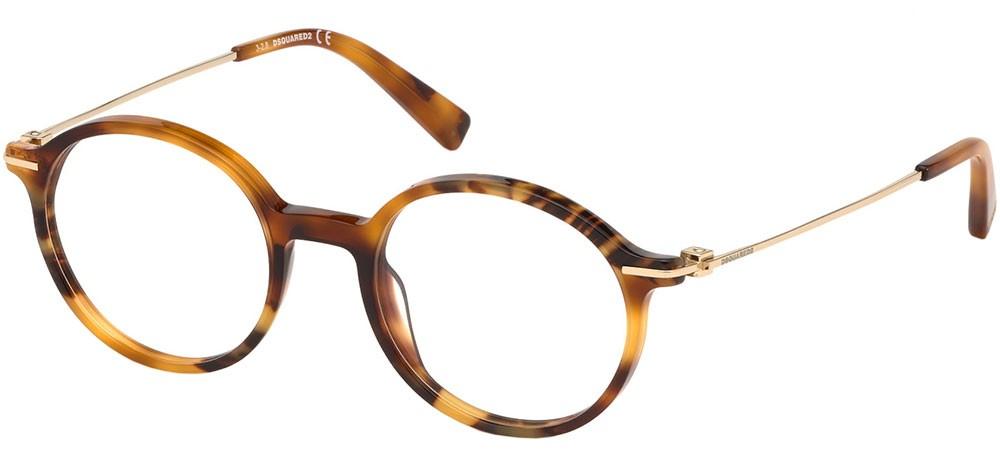 Dsquared2 DQ 5286 unisex eyeglasses fuse bold Italian flair with precise craftsmanship. Round acetate frames in classic Havana deliver original character and authentic designer appeal while the complete frame supports adjustable lenses for a tailored fit. Lightweight yet sturdy construction and refined finishes speak to premium eyewear sensibility without excess. A standout everyday pair for discerning style seekers. Shop the Dsquared2 DQ 5286 now at Otticanet to find your fit.