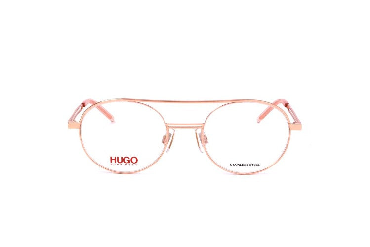 Hugo HG 1146 unisex eyeglasses merge original design with authentic premium craft. Rose gold round steel frames bring modern retro charm while complete frame lenses and adjustable lenses offer tailored comfort and clear vision. The lightweight steel construction and precise finishing highlight genuine materials and attention to detail. A standout option among rose gold round frames and unisex glasses for those who value style and substance. Choose your HG 1146 pair today.