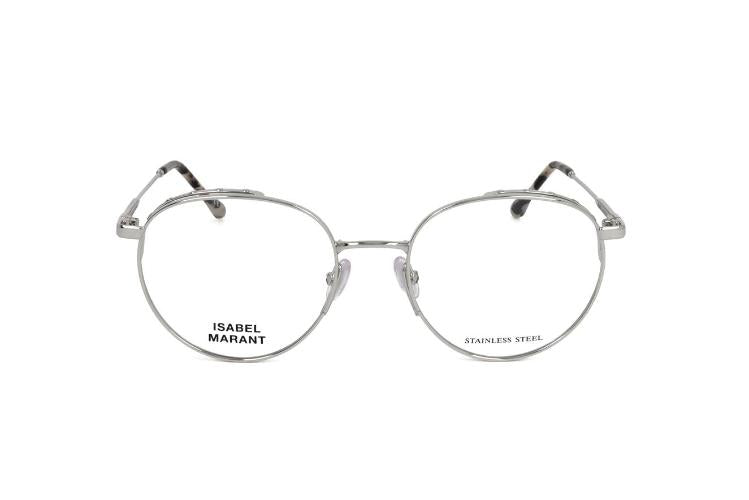 Isabel Marant IM 0067 women's eyeglasses offer a fresh take on classic round frames. Crafted in silver steel with a complete frame construction, these designer glasses deliver lightweight strength and refined shine. The round shape flatters both soft and angular faces while adjustable lenses let you fine tune visual comfort. Authentic Isabel Marant details and premium materials emphasize the originality and genuine designer quality of this model, perfect as everyday optical frames or a signature accessory. Check available sizes and order your pair to enjoy lasting style.