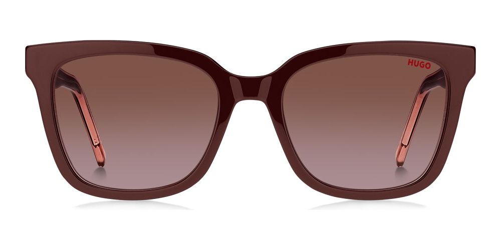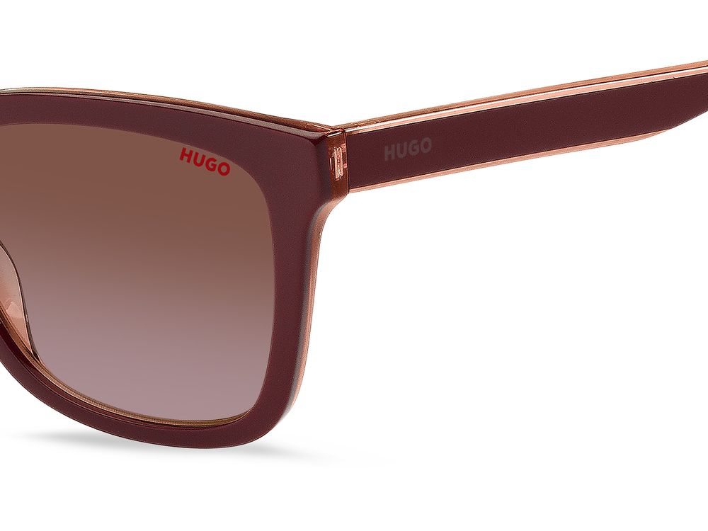 Elevate your look with these stylish Hugo sunglasses for women. The square shape and trendy BURGUNDY PINK/BROWN SHADED BRICK color combination make a bold statement. The acetate frame in pink complements the brown shaded lenses made of polycarbonate. The HG 1248/S model features a 54/19/140 size for a comfortable fit. These original sunglasses also offer adjustable lenses for added convenience. Add a touch of sophistication to your outfit with these chic Hugo sunglasses, available on Otticanet.