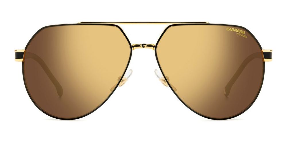 Discover the latest trend in eyewear with Carrera 1067/S sunglasses for men. The geometric shape in Matte Black Gold/Gold Brown exudes sophistication and style. Made with high-quality metal frame in black and generic gold lenses, these sunglasses are both fashionable and durable. The adjustable and polarized lenses provide optimal vision and protection. With a size of 62/14/145, these original Carrera sunglasses are a must-have for any fashion-forward man. Elevate your look with these sleek and modern sunglasses, available on Otticanet for a touch of luxury to your everyday style.