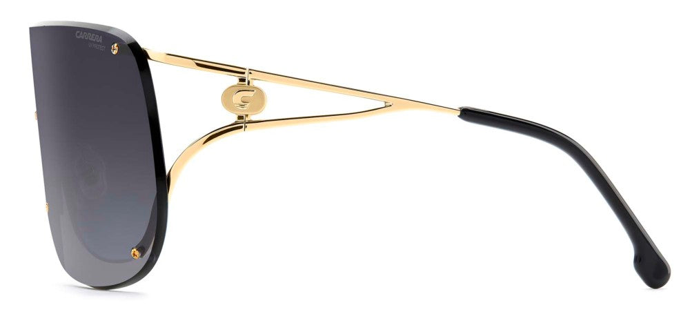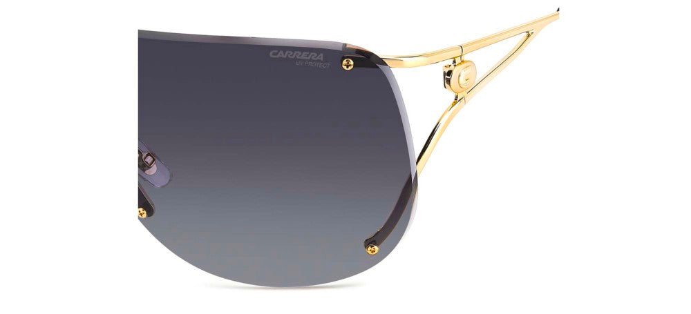 Elevate your style game with the Carrera 3006/S shield sunglasses for women, offered exclusively by Otticanet. Crafted with a sleek metal frame in a luxurious gold finish, these sunglasses exude timeless elegance. The grey polycarbonate lenses provide optimal UV protection while adding a touch of mystery to your look. The Carrera 3006/S combines fashion-forward design with the brand's signature craftsmanship, making it a must-have accessory for any trendsetter. Embrace your unique identity with these statement shades that effortlessly blend sophistication and edge. Step into the spotlight and own your style with the Carrera 3006/S sunglasses from Otticanet. Shop now and upgrade your eyewear collection.