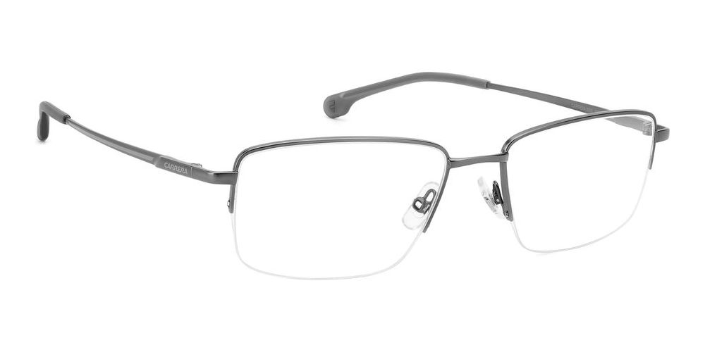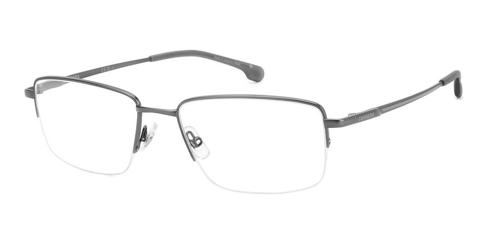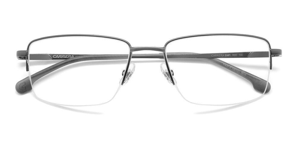 Discover the latest trend in eyewear with the Carrera 8895 eyeglasses for men. The geometric shape and matte dark ruthenium color give a modern and edgy look. Made with high-quality metal frame in a stylish grey shade, these glasses are perfect for any occasion. The cerchiata lenses are adjustable for your comfort and vision needs. Whether you're in the office or out for a night on the town, these original Carrera glasses from Otticanet will elevate your style effortlessly. Make a statement with the Carrera 8895 eyeglasses and upgrade your eyewear collection today.