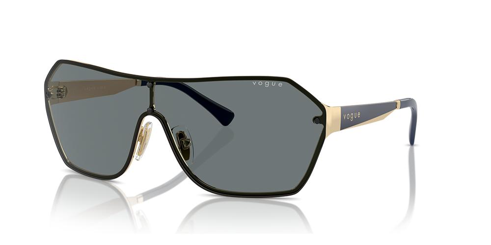 Elevate your style with the Vogue VO 4302S shield sunglasses from Otticanet. Crafted for the modern woman, these sleek shades exude confidence and sophistication. The gold metal frame adds a touch of luxury, while the striking blue lenses make a bold statement. Embrace your individuality with this unique design that effortlessly combines fashion and function. Whether you're strolling the city streets or lounging by the pool, these sunglasses are sure to turn heads. Don't miss out on the opportunity to own a piece of eyewear artistry. Try the Vogue VO 4302S sunglasses today and step into the spotlight.