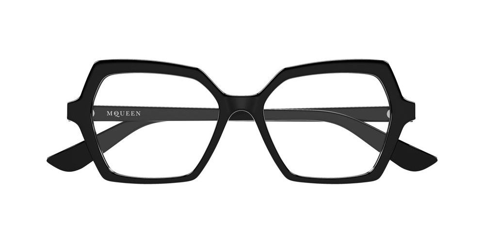 Alexander McQueen AM0537O women's eyeglasses blend modern geometric design with luxurious recycled acetate frames in a sleek black finish. Crafted to embody authenticity and premium quality, these eyeglasses offer adjustable lenses for personalized vision comfort. Perfect for trend-forward women seeking originality in their eyewear, this model embraces sustainability without compromising style. Experience a distinctive look that mirrors sophistication and individuality. Explore this exceptional addition to your collection and redefine your eyewear essentials.