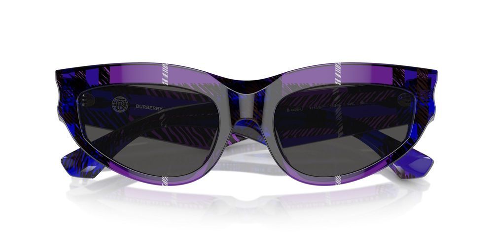 Elevate your style with the Burberry BE 4425U cat eye sunglasses, exclusively available at Otticanet. Crafted for the modern woman who values sophistication and trendsetting fashion, these sunglasses are the epitome of elegance.The acetate frame in a luxurious Violet hue exudes glamour, while the Grey bio polyamide lenses offer superior sun protection and clarity. The unique cat eye shape effortlessly complements all face shapes, adding a touch of femininity to any ensemble.The Burberry BE 4425U sunglasses are a true expression of the brand's commitment to quality and design. With meticulous attention to detail and expert craftsmanship, each pair exudes originality and authenticity that is unmistakably Burberry.Make a statement and exude confidence with these stunning sunglasses. Perfect for any occasion, whether you're relaxing on the beach or strolling through the city streets. Embrace your individuality and style with the Burberry BE 4425U cat eye sunglasses from Otticanet.Indulge in luxury and sophistication with these must-have sunglasses. Try them today and elevate your look effortlessly.