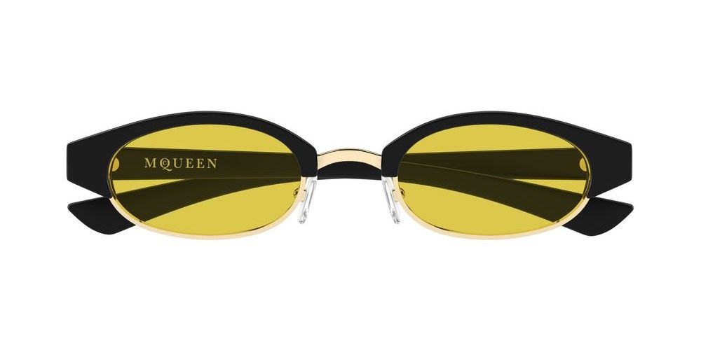 Experience refined style with Alexander McQueen sunglasses AM0534S, designed for those who appreciate unisex elegance. Crafted from recycled acetate, the black round frames embody a commitment to sustainable luxury. The bio nylon lenses in yellow offer an adjustable feature, ensuring comfort tailored to your vision needs. These sunglasses merge innovative materials with timeless design, reflecting authenticity and premium craftsmanship. Ideal for individuals seeking distinctive eyewear that harmonizes fashion and function. Embrace the sophistication of genuine quality and make a subtle statement with every wear. Explore this exceptional piece and enhance your eyewear collection with enduring appeal.