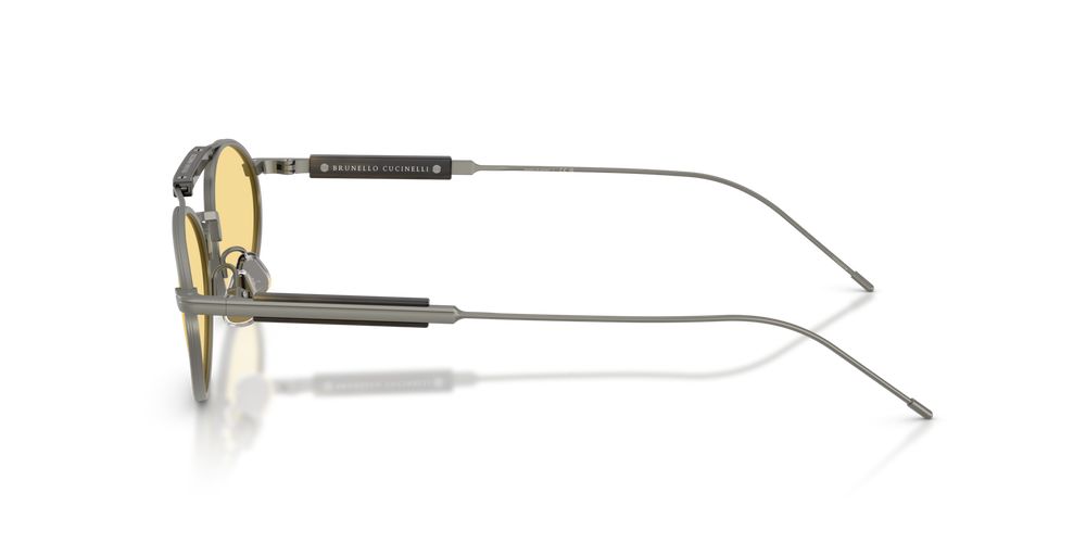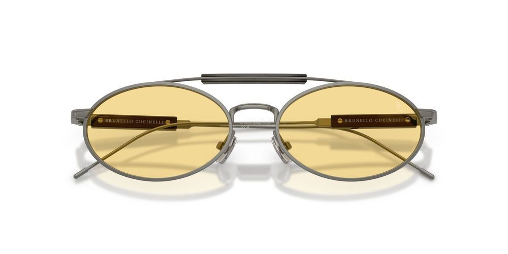 Brunello Cucinelli BC 2013ST sunglasses pair authentic Italian design with premium materials for a modern signature look. This unisex oval model features a featherlight titanium frame in refined grey that delivers strength and an elegant silhouette. Yellow general lenses use adjustable technology for personalized comfort and clear vision while preserving reliable sun protection. Subtle detailing and precise finishing signal genuine designer craftsmanship, making these sunglasses a standout choice for premium eyewear and designer sunglasses seekers. Ideal for those who want oval sunglasses with a titanium frame and a distinctive lens tint. Secure your pair of BC 2013ST now for a tailored fit and lasting quality.