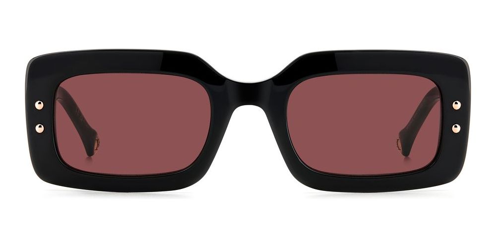 Carolina Herrera HER 0187/S women's sunglasses pair bold geometric lines with luxurious acetate craftsmanship. The glossy black frame houses vivid red polyester lenses for a striking, authentic designer statement. These premium Carolina Herrera sunglasses balance comfort and meticulous detailing for refined wardrobes seeking original style. Available at Otticanet in limited quantities. Shop HER 0187/S now.