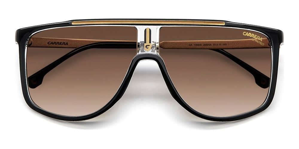 Discover the perfect blend of style and sophistication with the Carrera 1056/S sunglasses for men. Featuring a geometric shape in a striking BLACK GOLD/BROWN SHADED color combination, these sunglasses are a true statement piece. The injected/propionate frame in gold complements the brown polarized polycarbonate lenses, providing both durability and protection. With a size of 61/11/145, the Carrera 1056/S exudes luxury and elegance. Elevate your look with these original Carrera sunglasses, available on Otticanet. Experience the ultimate in fashion and functionality with this must-have accessory.