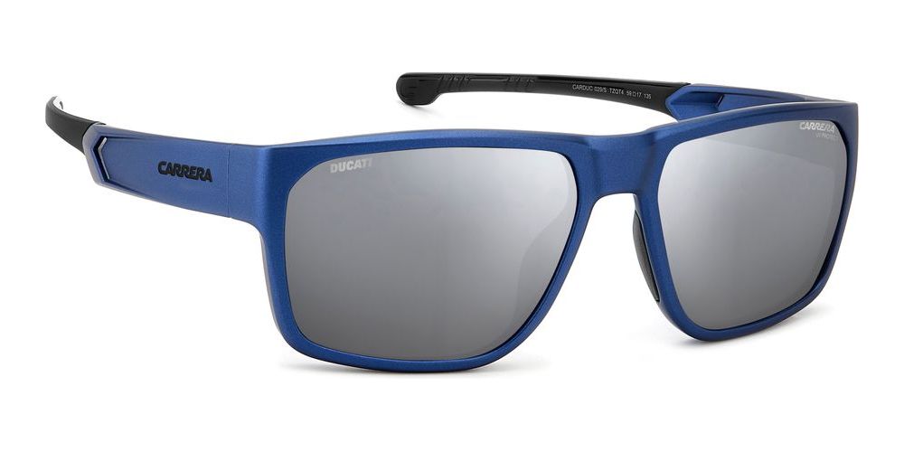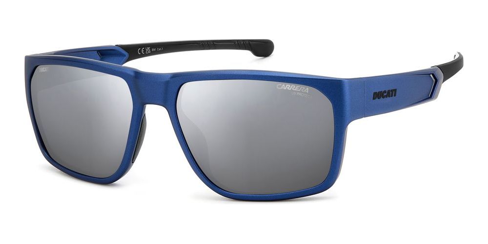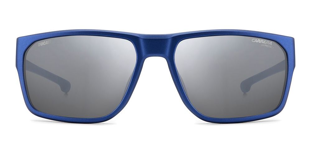 Introducing the Carrera Ducati CARDUC 029/S sunglasses for men, a stylish and modern addition to your eyewear collection. These geometric-shaped sunglasses in BLUE METALIZED/SILVER are crafted with injected/propionate frames in a striking blue color. The silver polycarbonate lenses provide both style and protection. With a size of 59/17/135, these sunglasses are perfect for any occasion. The adjustable lenses add versatility to this already impressive design. Shop for original Carrera Ducati sunglasses on Otticanet and elevate your look with this unique and high-quality pair.