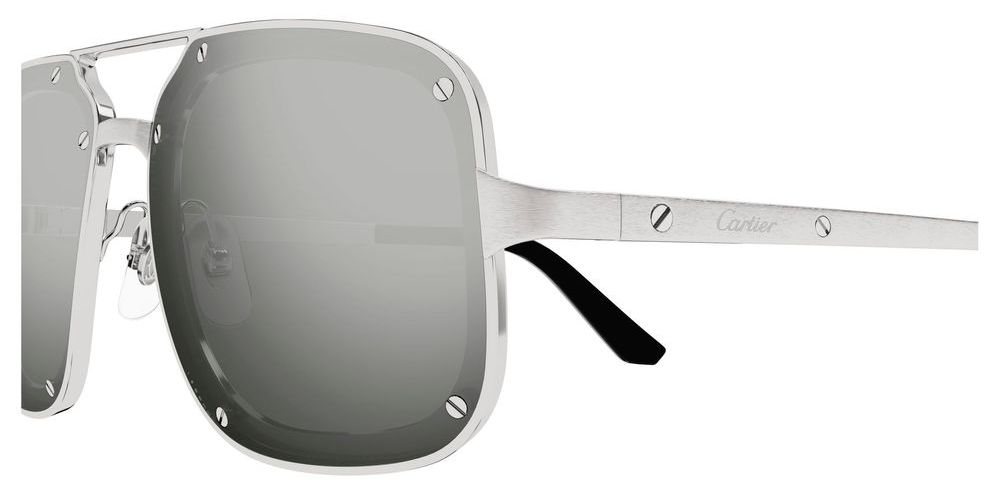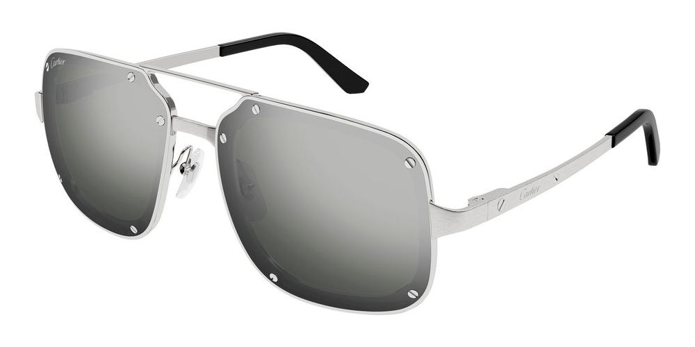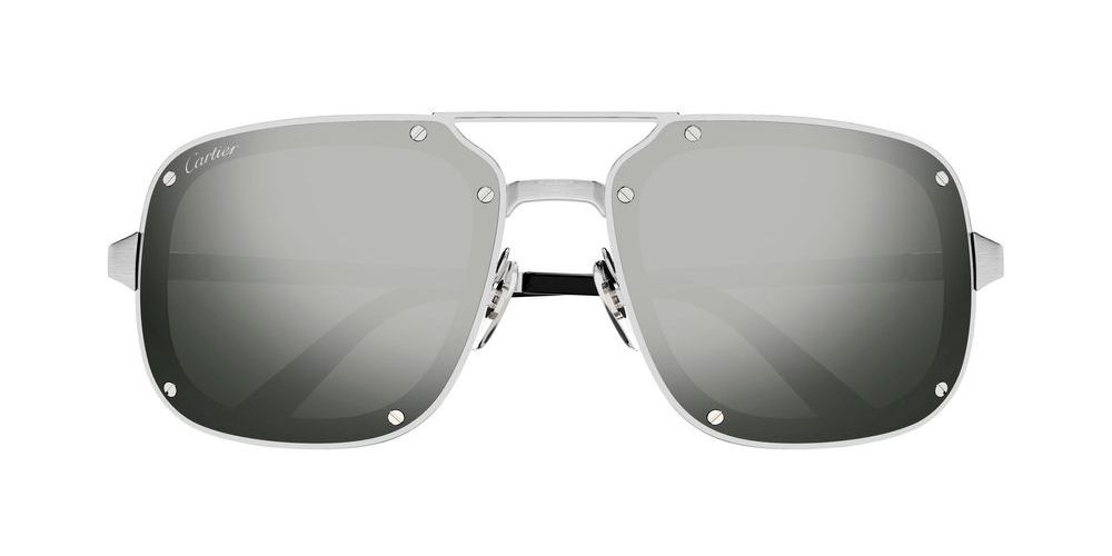 Introducing the Cartier CT0194S sunglasses from the iconic Santos de Cartier collection, designed exclusively for men who appreciate luxury and style. Crafted from premium titanium, the silver frame exudes sophistication while ensuring durability. The striking silver BIO NYLON lenses feature a mirror finish that not only protects your eyes but also enhances your look with a touch of elegance. The classic pilot shape adds a timeless appeal, making these sunglasses a must-have accessory for any modern gentleman. Experience the perfect blend of authenticity and originality that only Cartier can offer. Don’t miss the chance to own a piece of this exquisite collection. Shop now and redefine your eyewear game.