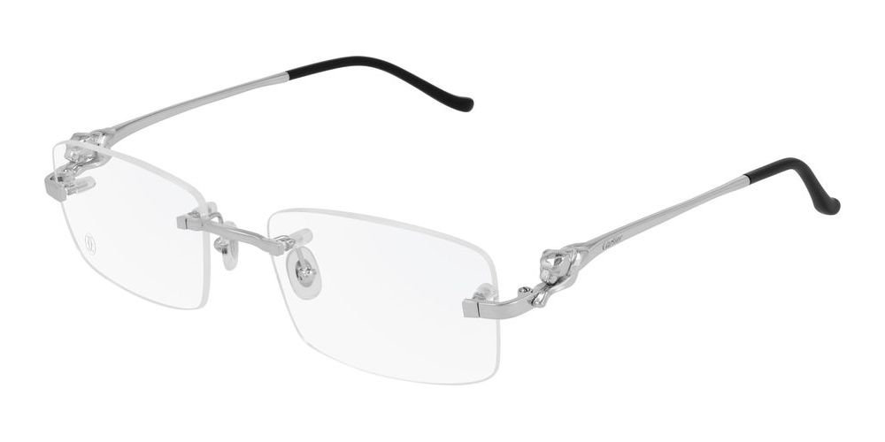 Introducing the exquisite Cartier CT0281O eyeglasses from the prestigious Panthère de Cartier collection. Designed exclusively for women, these geometric frames embody sophistication and modernity. Crafted from premium metal, the silver finish adds a touch of elegance, making them a statement piece for any occasion. The adjustable Glasant lenses ensure optimal comfort and vision clarity. With authenticity and originality at their core, these eyeglasses reflect Cartier's commitment to luxury and style. Make a bold fashion statement and embrace the allure of Cartier eyewear. Explore the collection today and indulge in a world of exceptional design.