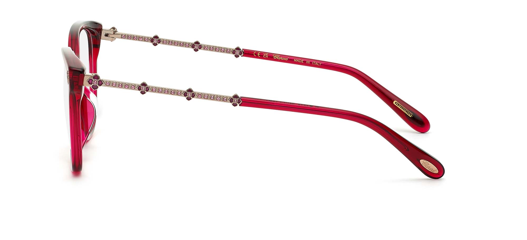 Elevate your look with these Chopard geometric eyeglasses for women. The burgundy acetate frame adds a bold pop of color, while the circular lenses provide a unique touch. The adjustable lenses ensure a perfect fit for your prescription needs. With the iconic Chopard logo on the temples, these glasses are a stylish statement piece. Don't settle for imitations, shop for authentic Chopard eyewear on Otticanet. Stand out from the crowd with these fashionable and original glasses. Add a touch of luxury to your everyday style with the VCH352S model.