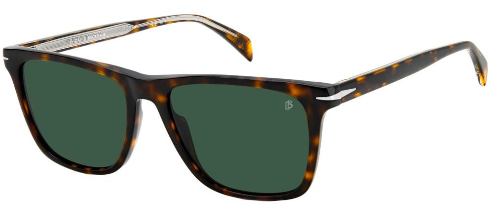 David Beckham men's sunglasses DB 1092/S pair classic craftsmanship with modern materials. Havana acetate frames offer warm tonal depth while lightweight polycarbonate green lenses deliver clear, impact resistant protection and refined color contrast. The authentic designer sunglass combines premium finish, precise fit and distinctive silhouette for a confident, stylish presence. Ideal for men seeking original designer sunglasses with durable construction and everyday UV shield. Shop the DB 1092/S at Otticanet to try them on.