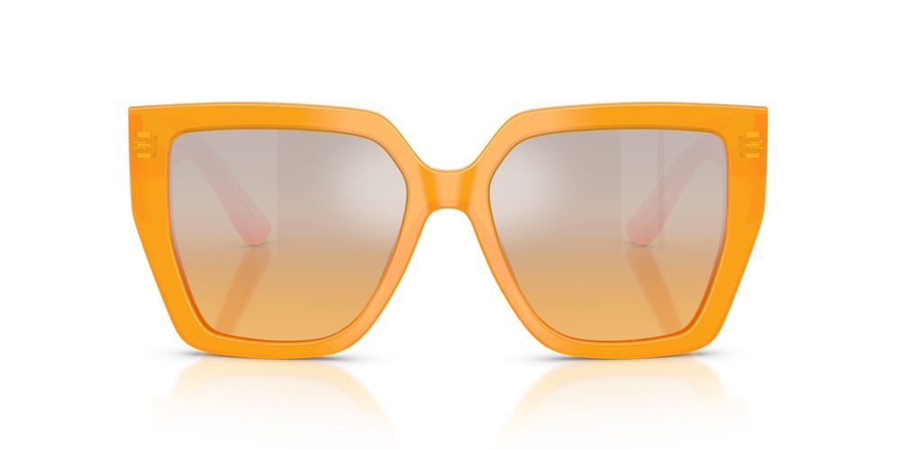 Step into the spotlight with the Dolce & Gabbana DG 4438 sunglasses, designed exclusively for women seeking a statement piece. These butterfly-shaped sunglasses feature a vibrant orange acetate frame that exudes confidence and flair. The adjustable, mirror lenses in a stunning silver offer both style and protection, reflecting your unique personality. Crafted with premium materials, these sunglasses embody the authenticity and originality that Dolce & Gabbana is renowned for. Make a bold fashion statement this season and indulge in luxury. Explore the DG 4438 now and redefine your eyewear collection.