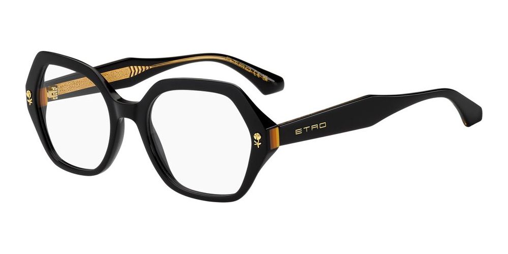 Discover the perfect blend of style and sophistication with these Etro 0012 geometric eyeglasses for women. Crafted from high-quality black acetate, the unique black and yellow color combination adds a touch of glamour to your look. The chic geometric shape and sleek design make these glasses a must-have accessory for any fashion-forward woman. With a bold black frame and stylish cerchiata lenses, these glasses exude elegance and class. The 52/19/145 size ensures a comfortable fit, while the pilot style adds a trendy edge to your outfit. Elevate your eyewear game with these original Etro glasses, available exclusively on Otticanet.