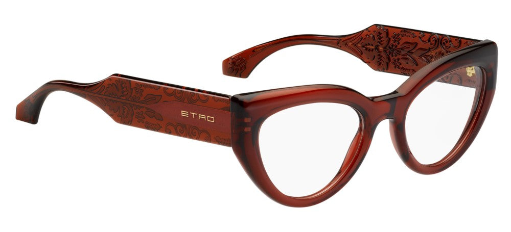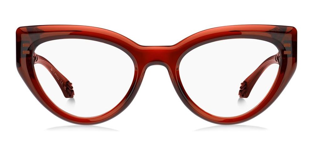 Introducing the stunning ETRO 0018 Cat-eye eyeglasses for women in the vibrant BRICK color. Crafted from high-quality injected/propionate material in a bold red frame, these glasses exude style and sophistication. The chic cerchiata lenses complement the unique shape, making them a perfect accessory for any fashion-forward woman. With a size of 51/20/145, these original Etro glasses are a must-have addition to your collection. Elevate your look with these statement eyeglasses, available exclusively on Otticanet.