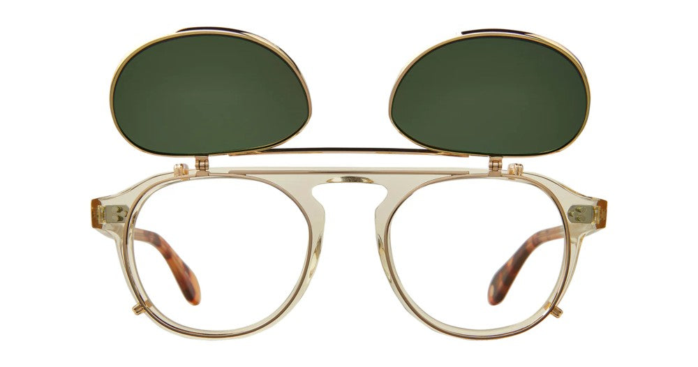 Experience the refined elegance of the GARRETT LEIGHT HARDING II CLIP eyeglasses. Crafted with a distinctive round frame in gleaming gold, these unisex glasses marry classic design with modern sophistication. The green lenses add a subtle pop of color while ensuring clear vision, embodying quality and style. Perfect for those who appreciate original eyewear that speaks authenticity and premium craftsmanship. Whether for professional or casual settings, these glasses promise comfort and a confident statement. Explore a choice that respects tradition yet looks forward with flair. Enhance your collection with this exceptional frame, available now through Otticanet.