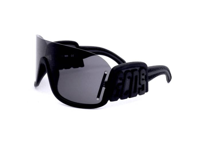 Authentic GCDS GD0001 shield sunglasses fuse bold design with premium materials for a standout unisex statement. A sculpted black plastic frame forms a seamless shield silhouette while grey polycarbonate lenses deliver lightweight comfort and effective UV protection. Branded details and refined finishing confirm the model authenticity and designer craftsmanship that define premium eyewear. Ideal for fashion oriented wardrobes and everyday sun protection. Check availability and secure your GD0001 from Otticanet.