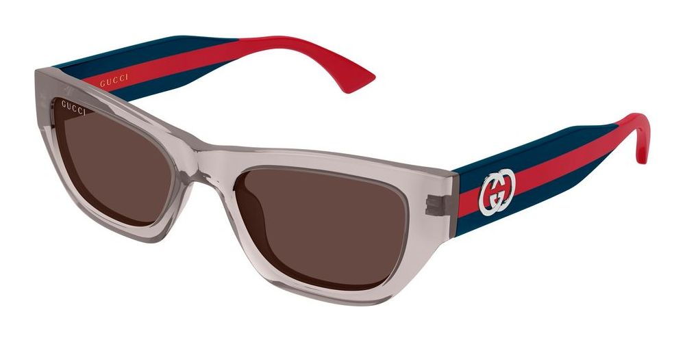 The Gucci GG2116S sunglasses embody refined sophistication tailored for women. Crafted in grey recycled acetate, these cat eye frames showcase Gucci's dedication to sustainability paired with classic style. The brown bio nylon lenses offer adjustable comfort while providing optimal protection against sunlight. Combining authentic luxury with contemporary design, these sunglasses are a testament to premium craftsmanship and modern elegance. Perfect for enhancing your ensemble with subtle charm, the GG2116S offers a unique accessory experience. Experience genuine quality that balances aesthetics and responsibility. Explore the perfect blend of innovation and timeless fashion with Gucci at Otticanet.