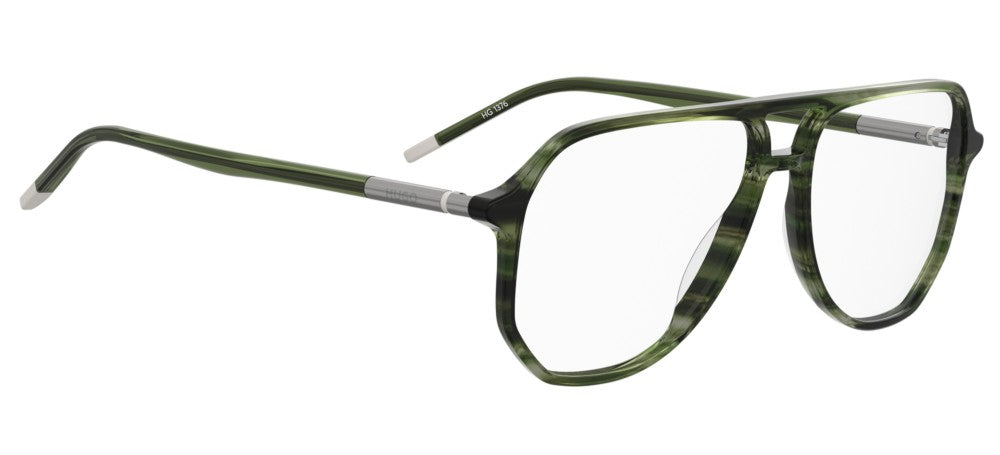 Introducing the Hugo HG 1376 eyeglasses for men, a stylish blend of sophistication and modern flair. These pilot-shaped frames in a striking green acetate exude originality and authenticity, making them a must-have accessory. The adjustable lens type ensures a comfortable fit, perfect for all-day wear. Experience the premium quality that sets Hugo apart. Step into a world of fashionable eyewear that speaks to your unique style. Don't wait to make these eyeglasses yours; explore our collection today!