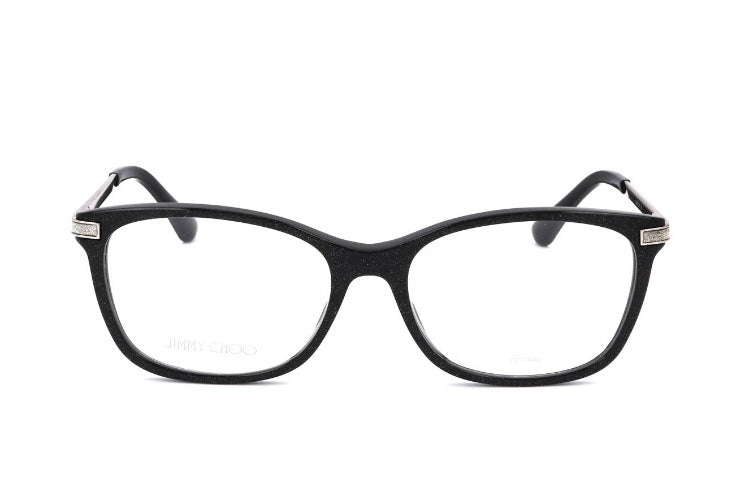 Jimmy Choo JC269 women's eyeglasses in squared black acetate marry authentic designer style with meticulous craftsmanship. The complete frame construction and adjustable lenses offer tailored comfort and precise vision. Distinctive brand details signal premium quality and original appeal for a modern confident look. Shop JC269 now.