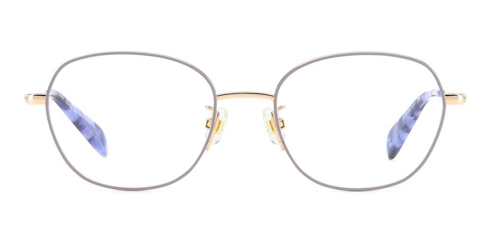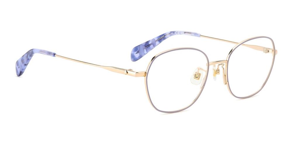 Discover the latest trend in eyewear with these Kate Spade geometric eyeglasses for women. The lilac color adds a touch of elegance to your look, while the titanium frame ensures durability and comfort. The adjustable lenses make them perfect for everyday wear. These original Kate Spade glasses are a stylish choice for any fashion-forward woman. Shop now on Otticanet for the best selection of designer eyewear.