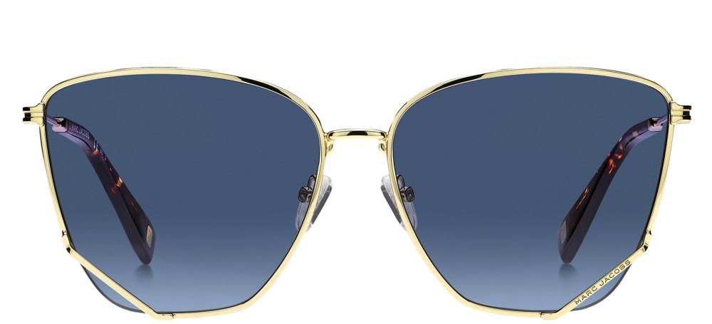 Marc Jacobs MJ 1006/S women's butterfly sunglasses blend vintage glamour with modern craftsmanship. Gold metal frames form a flattering butterfly silhouette while lightweight nylon blue lenses deliver vivid color and reliable UV protection. Authentic Marc Jacobs designer sunglasses feature refined branding and precise construction for a premium accessory that complements city style and special occasions. These original gold frames with blue lenses make a confident statement. Find availability and secure your pair at Otticanet.