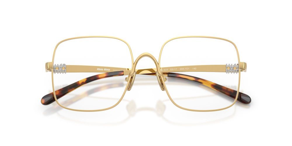 Experience the timeless elegance of Miu Miu VMU 51YV eyeglasses, designed exclusively for women who appreciate refined style. Crafted from premium gold metal, these geometric frames offer a perfect blend of sophistication and originality. The complete frame ensures durability while maintaining a lightweight feel, ideal for daily wear. Adjustable lenses provide personalized clarity, meeting your unique vision needs. Miu Miu embodies authentic Italian craftsmanship, making these eyeglasses an essential addition to your premium collection. Embrace a look that reflects your personality with unmatched quality and design. Explore this exquisite piece and enhance your eyewear with lasting allure.