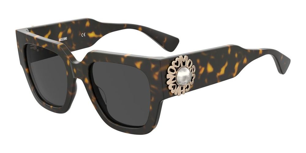 Elevate your fashion game with these stylish Moschino sunglasses for women. The square shape in Dark Havana/Dark Grey exudes sophistication and elegance. Crafted from high-quality acetate, the Havana frames complement the grey polycarbonate lenses perfectly. The 52/20/140 size ensures a comfortable fit for all-day wear. The MOS153/S model is a must-have addition to your collection. Shop these original Moschino sunglasses on Otticanet for a chic and trendy look that will turn heads wherever you go.