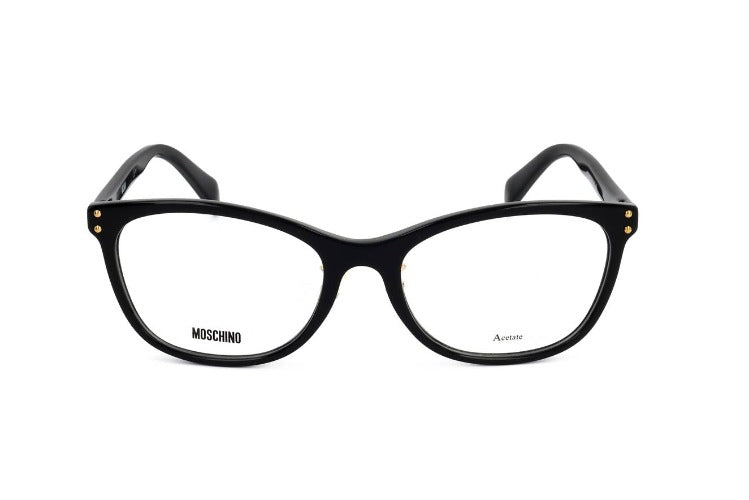 Moschino MOS540/F women's eyeglasses combine a bold squared design with refined Italian character. Crafted in premium black acetate, the complete frame delivers sturdy comfort while remaining lightweight. The squared silhouette frames the face with modern geometry, making these designer glasses a distinctive piece for everyday wear. Adjustable lens type allows a tailored optical setup to suit personal vision needs. Authentic Moschino detailing and meticulous finish underscore the model's premium quality. Ideal for women seeking black acetate frames with lasting construction. Check availability and secure the MOS540/F for your eyewear collection.