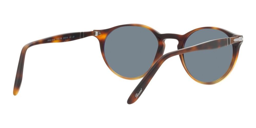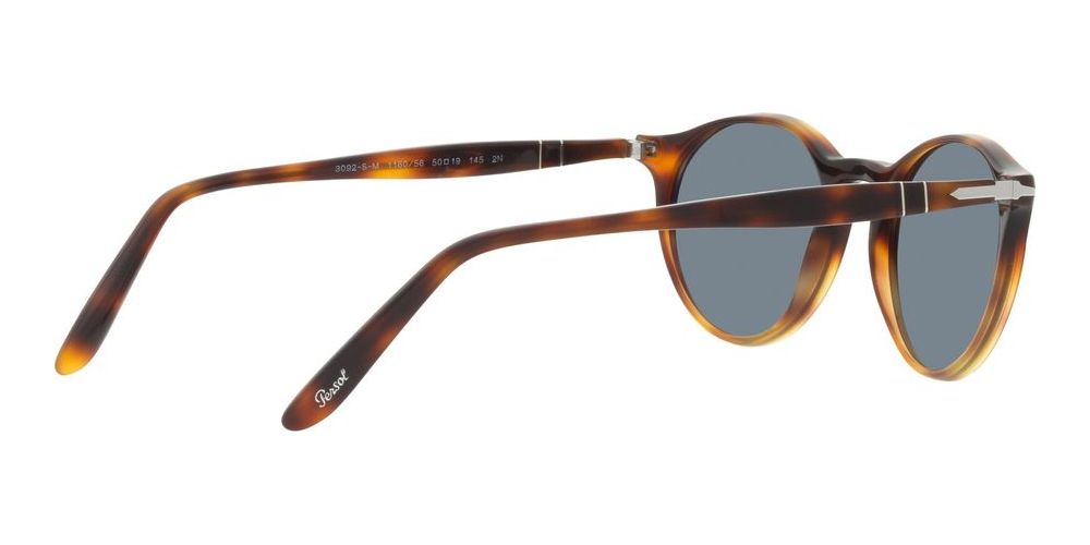 Discover the latest in fashion with these Persol unisex round sunglasses. The Havana shaded/light blue color combination adds a touch of sophistication to any outfit. Made with acetate frames in an avana hue, these sunglasses are both stylish and durable. The blue lenses provide 100% UV protection, making them perfect for everyday wear. With a 50/19/145 size, model PO 3092SM is sure to fit comfortably on any face shape. The lenses are also adjustable for added convenience. Invest in quality and style with these original Persol sunglasses, available exclusively on Otticanet.