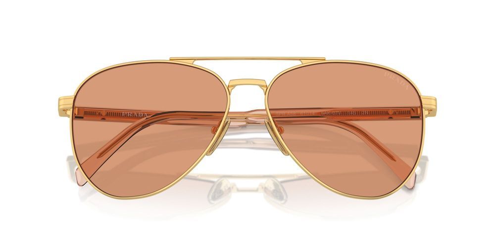 Elevate your style with the Prada PR A58S pilot sunglasses for men, exclusively available at Otticanet. Crafted from premium steel in a luxurious gold finish, these sunglasses exude sophistication and class. The vibrant orange polycarbonate lenses not only provide 100% UV protection but also add a pop of color to your look. The sleek and timeless design of the PR A58S model by Prada is perfect for the modern man who values quality and originality in his accessories. Whether you're hitting the beach or strolling through the city, these sunglasses will effortlessly elevate your outfit. Don't miss out on owning a piece of luxury eyewear that is sure to turn heads wherever you go. Try on the Prada PR A58S sunglasses today and step up your style game.